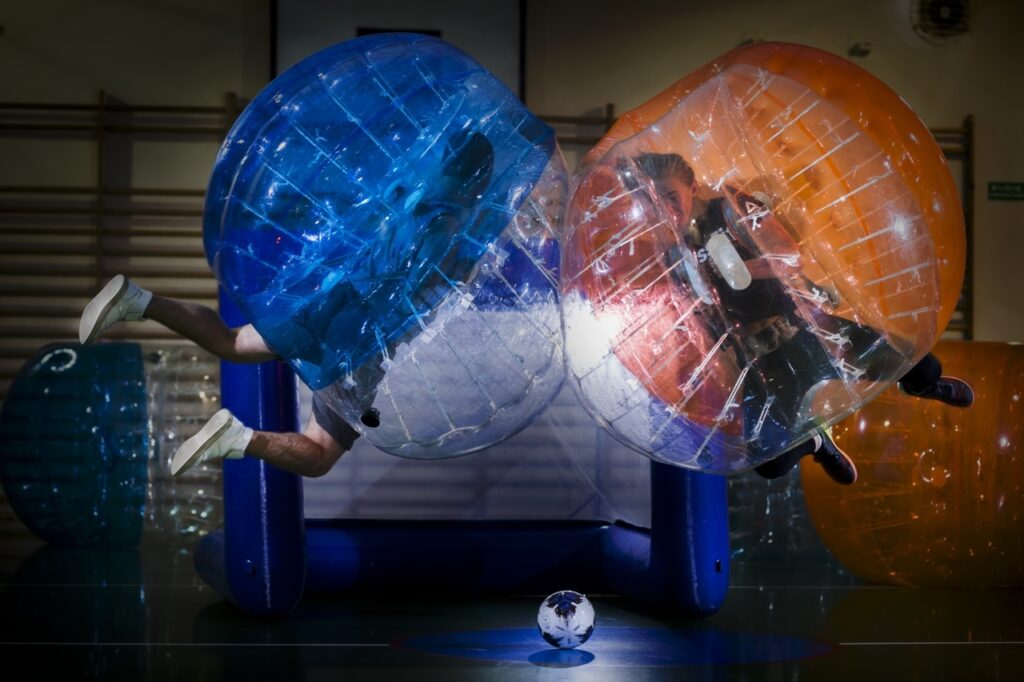 Mamy coś dla wszystkich szukających nietypowych atrakcji w bardzo aktywnej formie oto bubble ball czyli dmuchana kula do której zostaniecie “wpakowani” żeby chwilę później rozegrać w niej mecz piłki nożnej. Brzmi jak szaleństwo ale w tym szaleństwie jest też zabawa i kupa śmiechu. Wszyscy będą się świetnie bawić tym bardziej że nie ma tutaj obaw o kontuzję, kula amortyzuje wszystkie upadki i zderzenia. Ciężko to wszystko opisać słowami po prostu sprawdźcie sami! My sprawdziliśmy i polecamy.