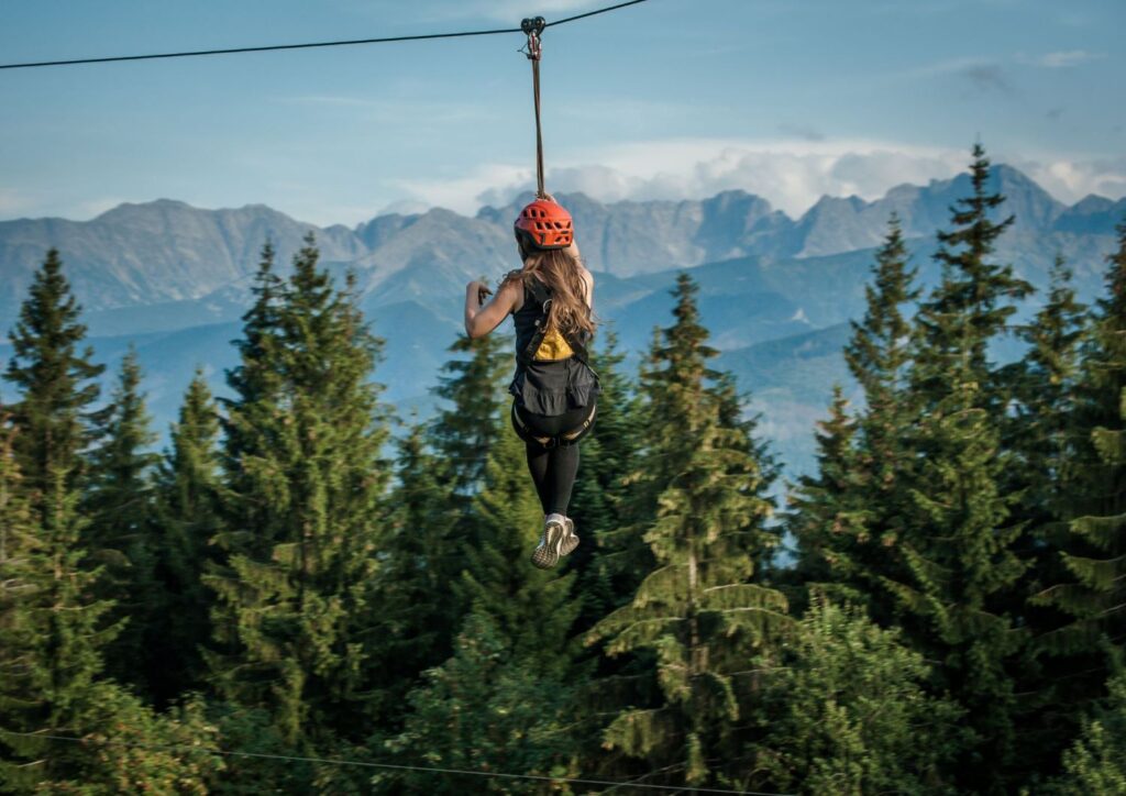 Położony na samym szczycie Gubałówki na wysokości aż 1126 m n.p.m park linowy z najdłuższą na podhalu tyrolką robi ogromne wrażenie na wszystkich uczestnikach. Przygotowanych jest tutaj kilka tras o różnym poziomie trudności dla większej satysfakcji każdej z osób biorących udział w tej zabawie. Niezależnie od tego którą trasą się poruszacie nad Waszym bezpieczeństwem stale będzie czuwać wykwalifikowany instruktor. A jeśli się odważycie na trochę więcej adrenaliny to zjazd z 350 m tyrolki zawieszonej 9 m nad ziemią na pewno Wam jej dostarczy i zapewni niezapomniane wrażenia z widokiem na Giewont.